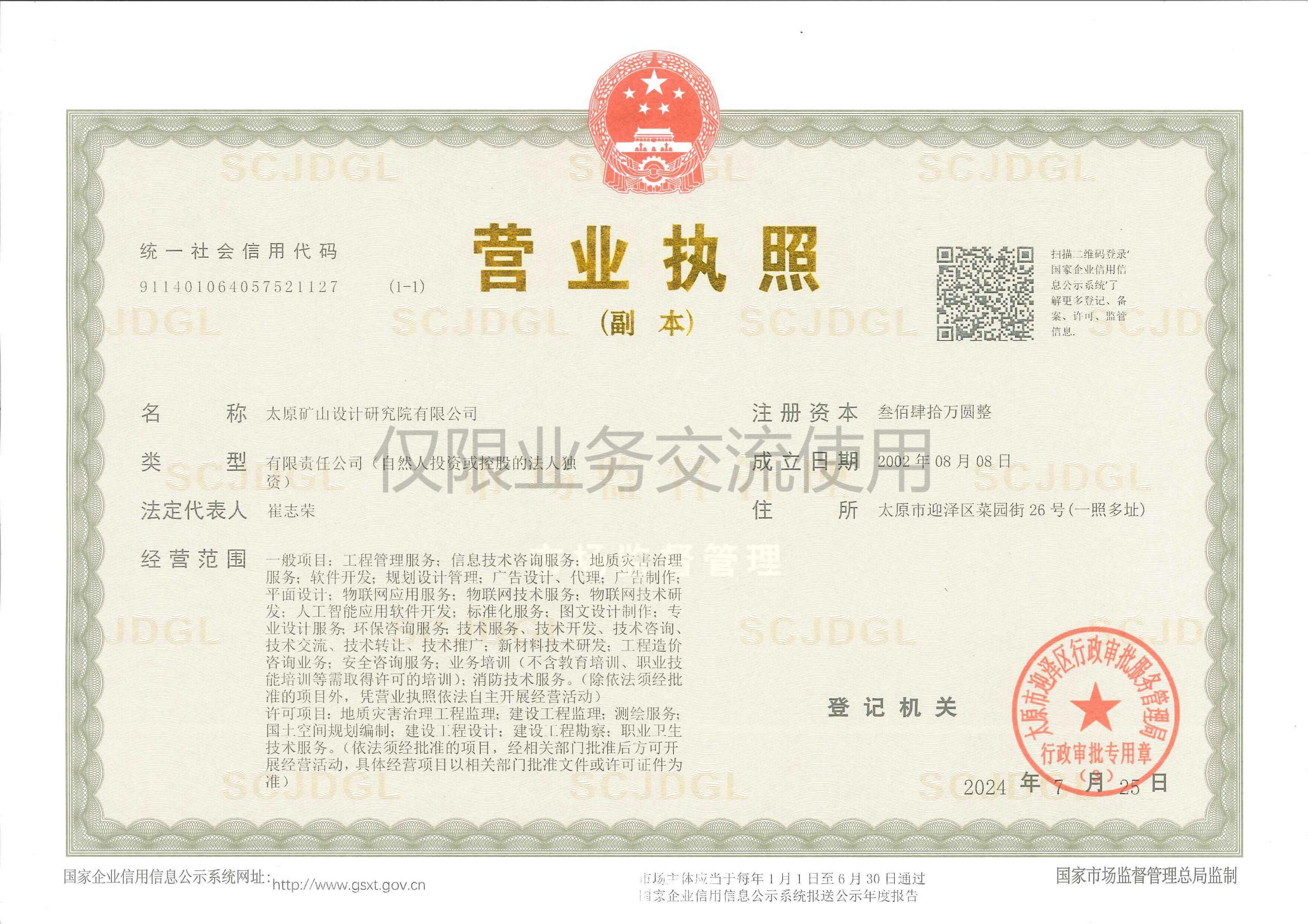 公司主要從事礦山采選尾工程設(shè)計(jì)、智能化及自動化礦山、建設(shè)綠色礦山、工程技術(shù)咨詢、規(guī)劃設(shè)計(jì)管理、施工勞務(wù)分包、土地規(guī)劃、地質(zhì)災(zāi)害治理服務(wù)、安全生產(chǎn)技術(shù)服務(wù)、軟件開發(fā)及測繪服務(wù);煤礦、非煤礦山設(shè)計(jì);煤礦、非煤礦山、危險(xiǎn)化學(xué)品安全評價(jià)(業(yè)務(wù)范圍:煤炭開采業(yè);金屬、非金屬及其他礦采選業(yè);石油加工業(yè),化學(xué)原料、化學(xué)品及醫(yī)藥制造業(yè));非煤礦山、冶金等工商貿(mào)企業(yè)、危險(xiǎn)化學(xué)品從業(yè)單位安全生產(chǎn)標(biāo)準(zhǔn)化評審;公共場所衛(wèi)生、生活飲用水、公共場所集中中央空調(diào)通風(fēng)系統(tǒng)的檢驗(yàn)、檢測、評價(jià);職業(yè)健康檢測檢驗(yàn);建設(shè)項(xiàng)目職業(yè)病危害評價(jià)、職業(yè)危害因素檢測與評價(jià);安責(zé)險(xiǎn)技術(shù)服務(wù);業(yè)務(wù)培訓(xùn)等工作。